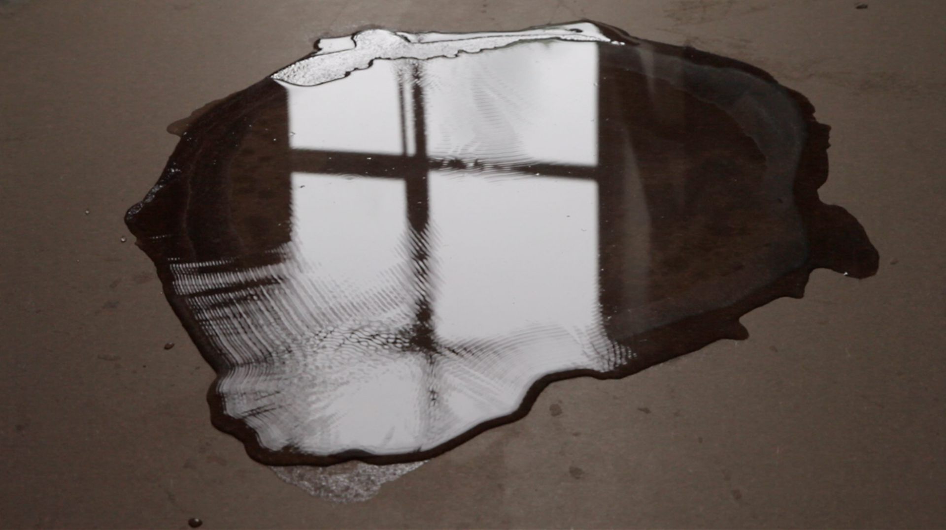 The installation Pfütze consists of a pool of water on the ground that reacts to acoustic signals. To every loud noise in the room, the puddle reacts with seismological vibrations. In this way, this accumulation of water reflects both the surrounding space and the ambient sound.